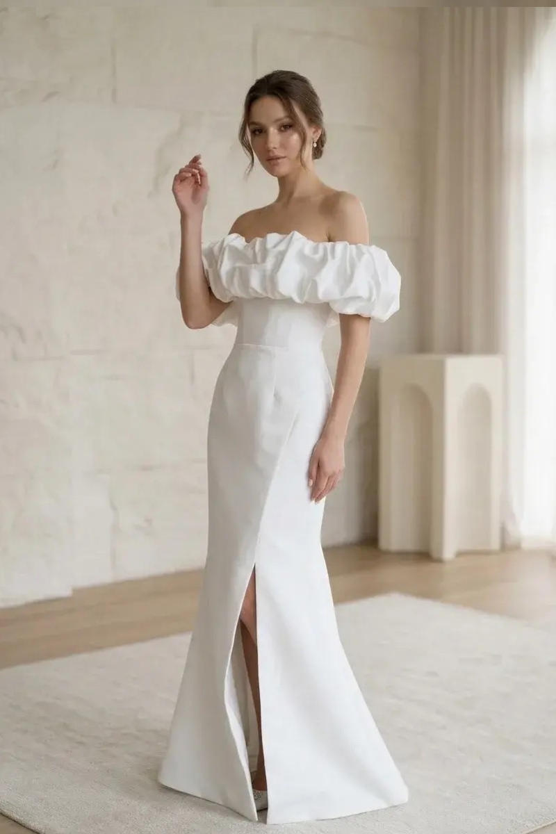 ✨ Это платье – воплощение современного минимализма и уверенности. Плотный атлас саншайн благородно блестит, а объемная бретель добавляет образу архитектурности и надежно фиксирует лиф, позволяя чувствовать себя комфортно весь день.